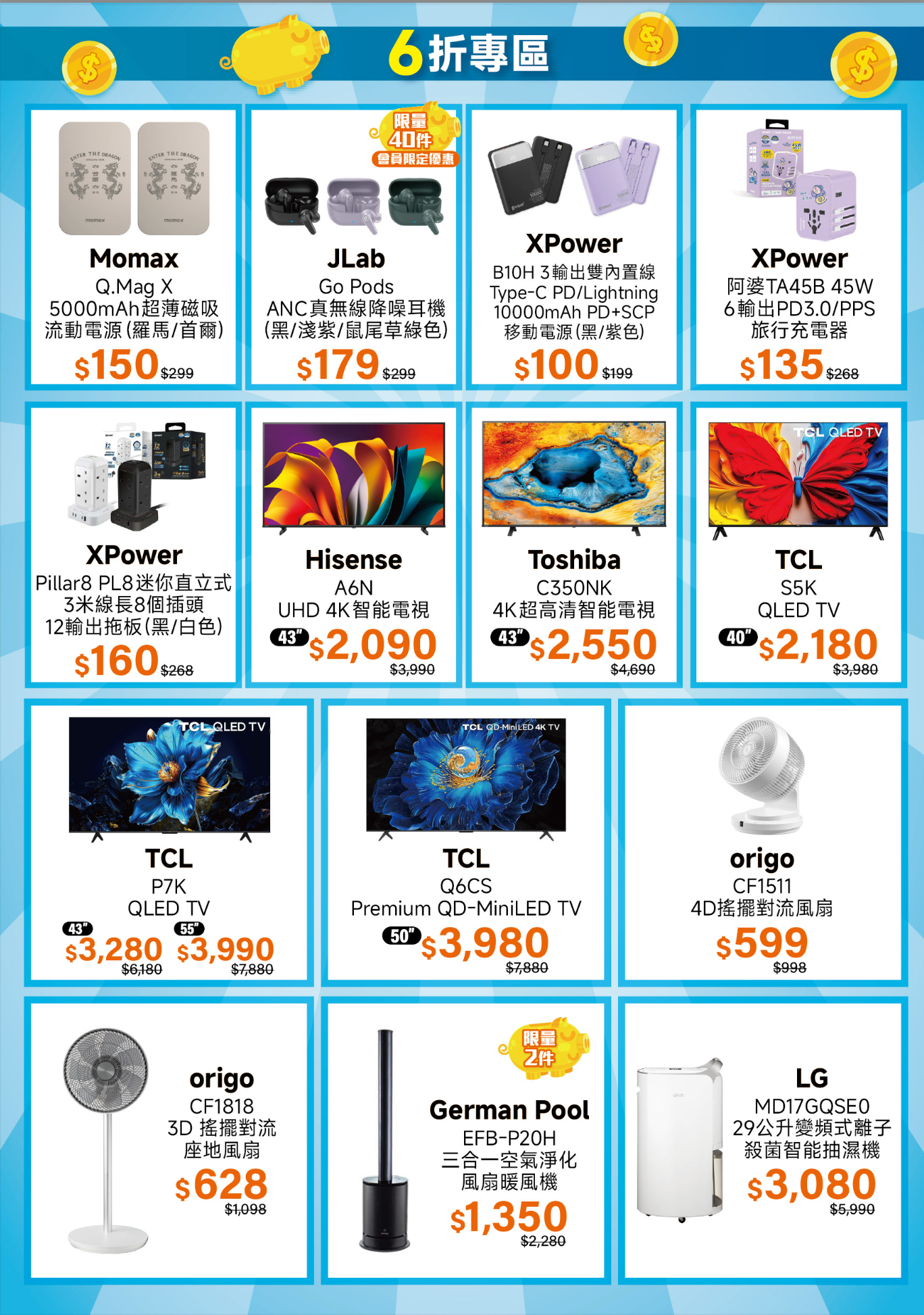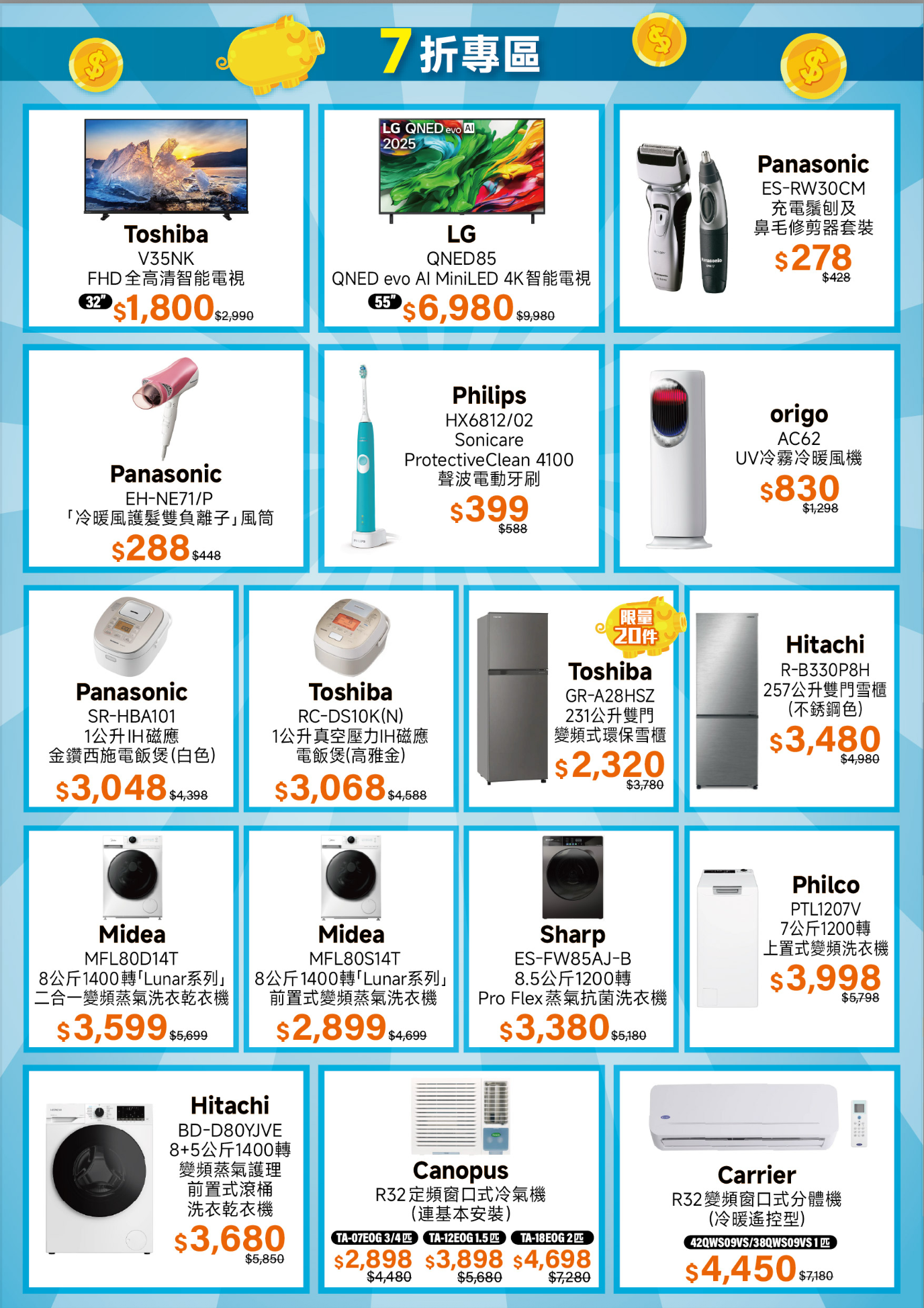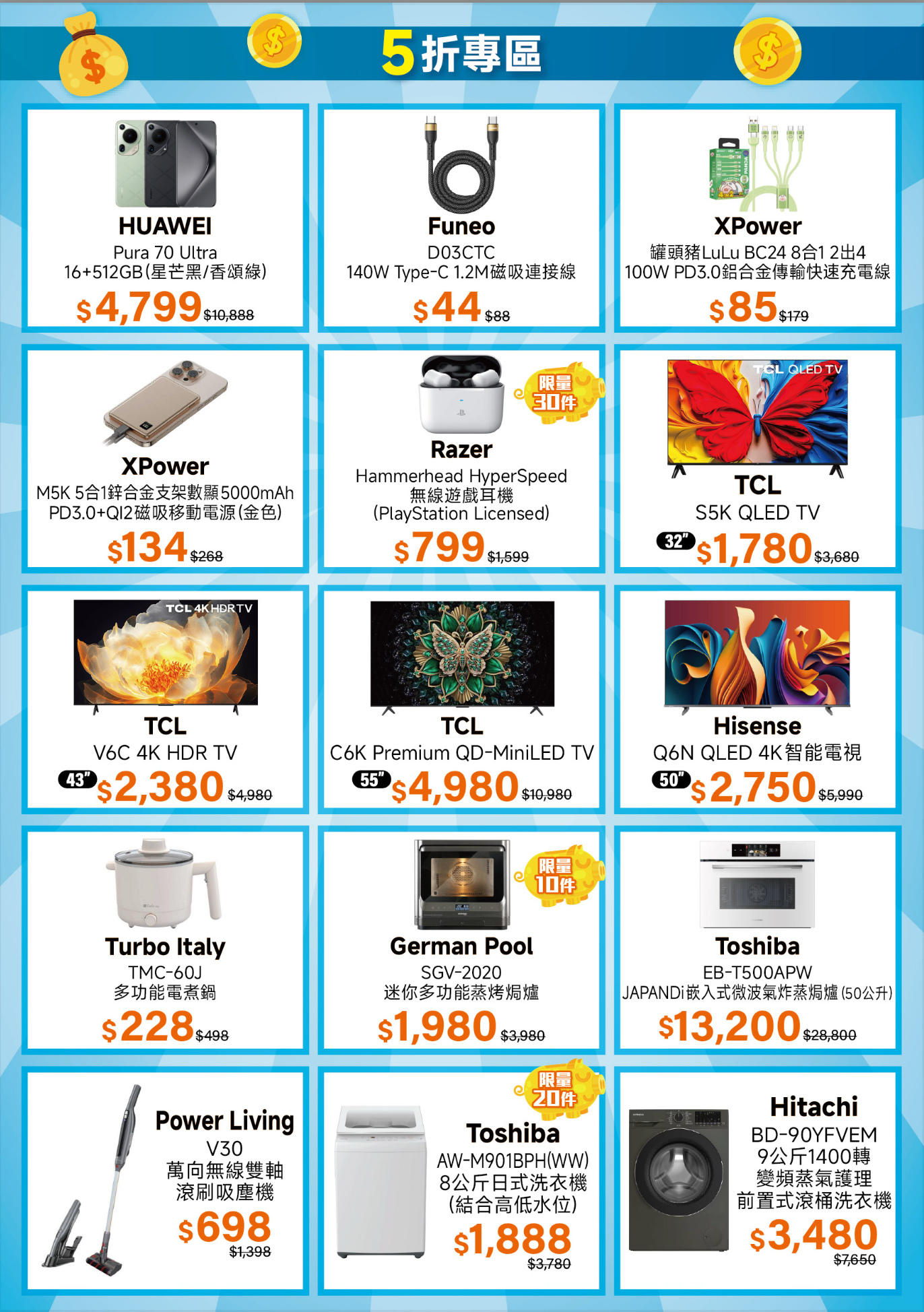 是次優惠涵蓋多款熱賣商品,當中 Hisense 變頻上置式雙門雪櫃及 Razer Kishi Ultra 遊戲控制器均以三四折發售 。若於 2026 年 4 月 30 日前憑安信 WeWa 或 EarnMORE 信用卡簽賬,更可獲高達 $1,440 現金回贈 。