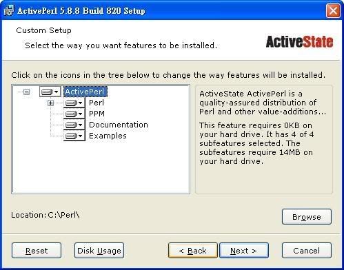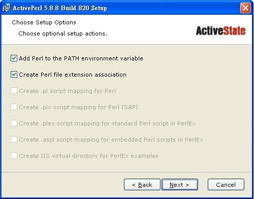 先如下圖安裝好 ActivePerl: