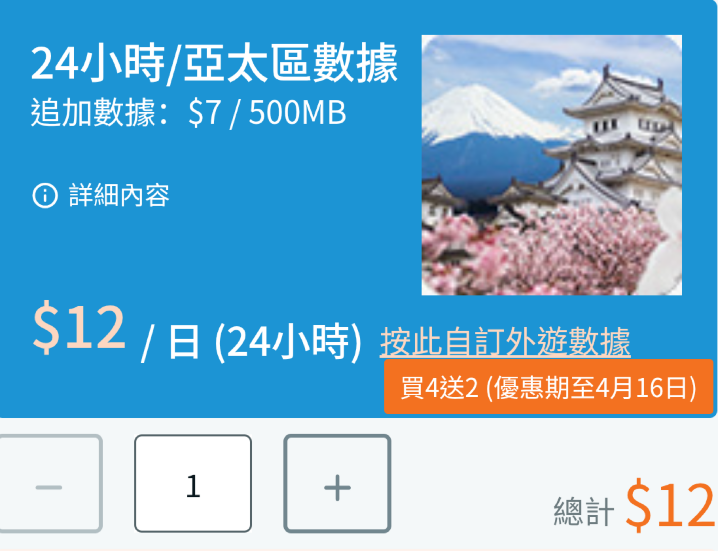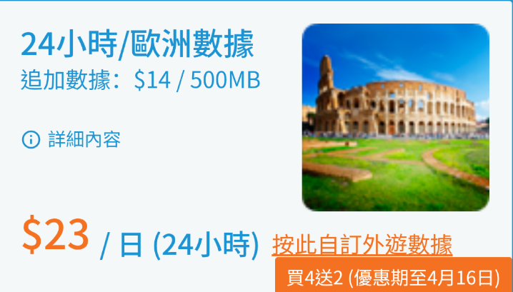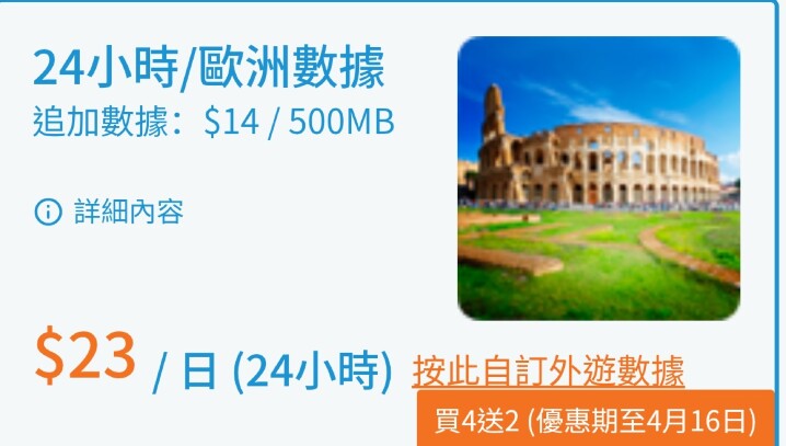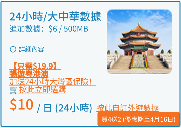 由即日起到 2026 年 4 月 16 日,只要在 SoSIM App 或網站買指定嘅 24 小時外遊數據通行證,就可以享有「買 4 送 2」優惠。今次活動涵蓋咗好多地方,包括亞太區、大中華、歐洲同埋美墨加,無論係返大陸定係飛去歐美都用得。各區收費同 5G 升級