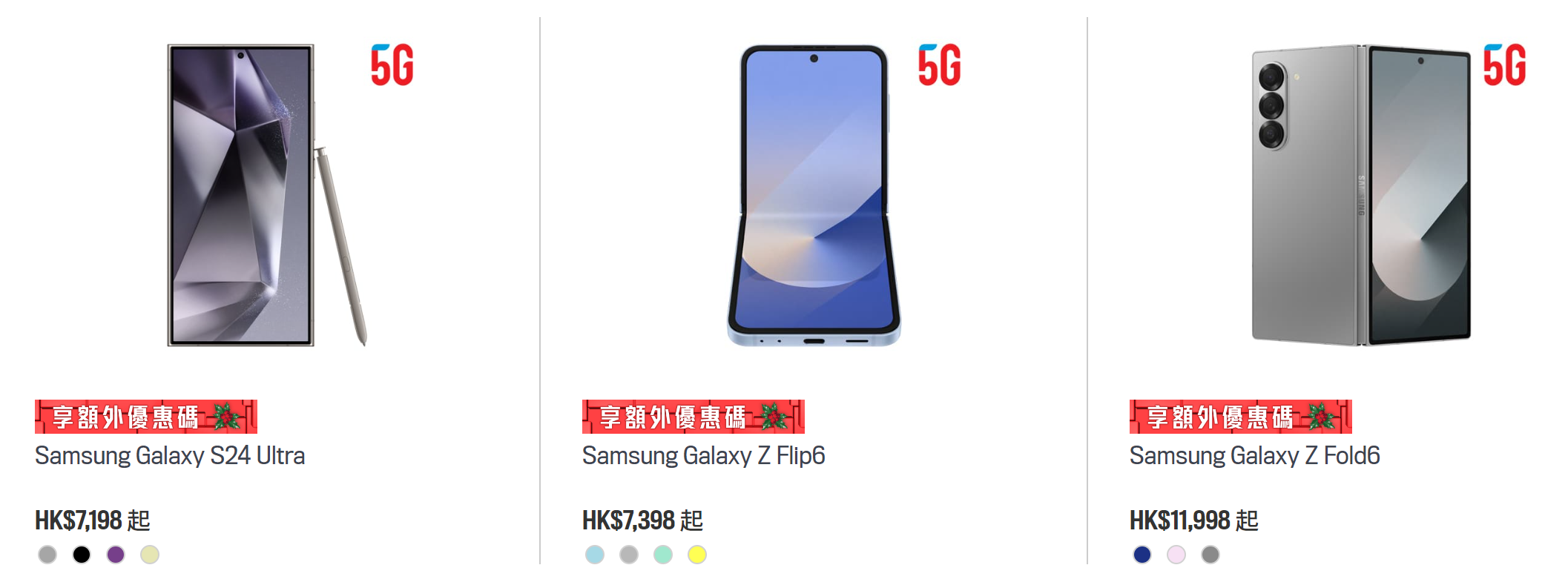 | 三星 Galaxy Z Flip6 (12+512GB) | $9698 | $7798 |