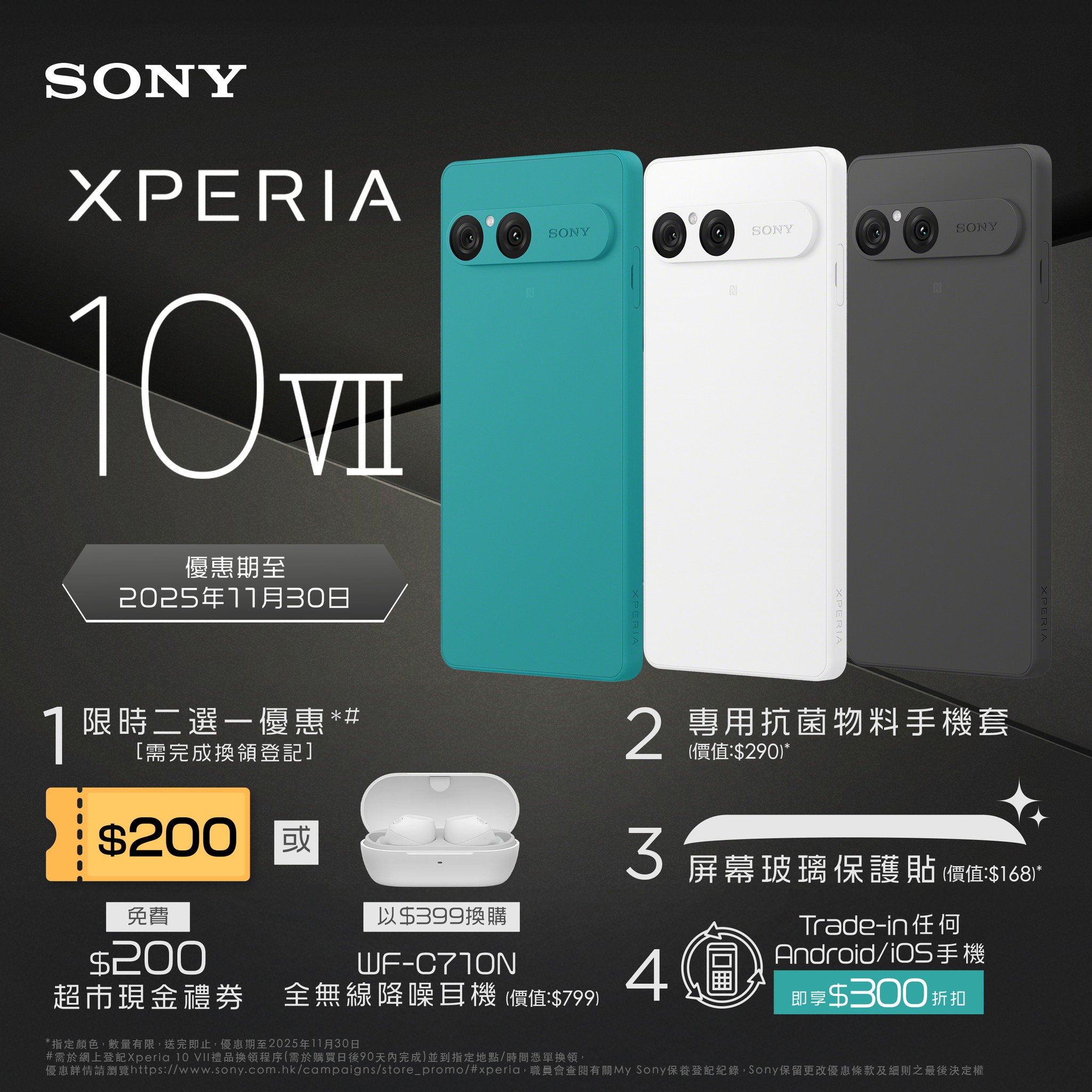 最近 Sony Xperia 10 VII 推出咗限時優惠,即日起至 2025 年 11 月 30 日入手 Xperia 10 VII,就享以下福利(需完成網上登記換領程序,購買後 90 天內登記,之後到指定地點換領,詳情可按呢度睇官網):二選一禮遇:
