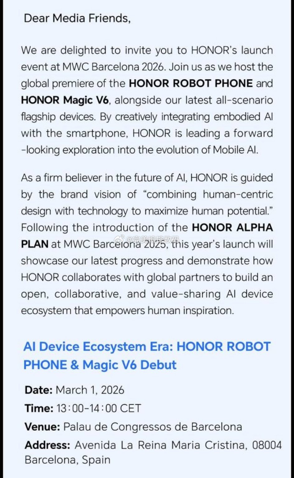 根據目前流出的資料,Magic V6 的規格相當強悍。新機傳搭載 Snapdragon 8 Elite Gen 5 流動平台,並配備高達 2 億像素的鏡頭。據悉新機將內置 7000mAh 大電池,有機會成為 2026 年電池容量最大的摺疊屏手機。屏幕則採用京東方柔性面板,內外雙屏都達 2K 解像度、5000 nits 峰值亮度以及高頻 PWM 調光技術。