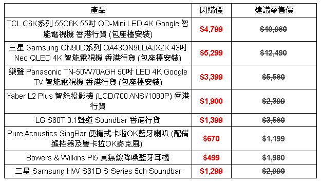 說的是友和 YOHO,今晚 22:00 開始搶購,會推出多款皇牌產品,部份低至原價 3 折以下。頭炮就係電視機,呢度版主特別推介幾款: