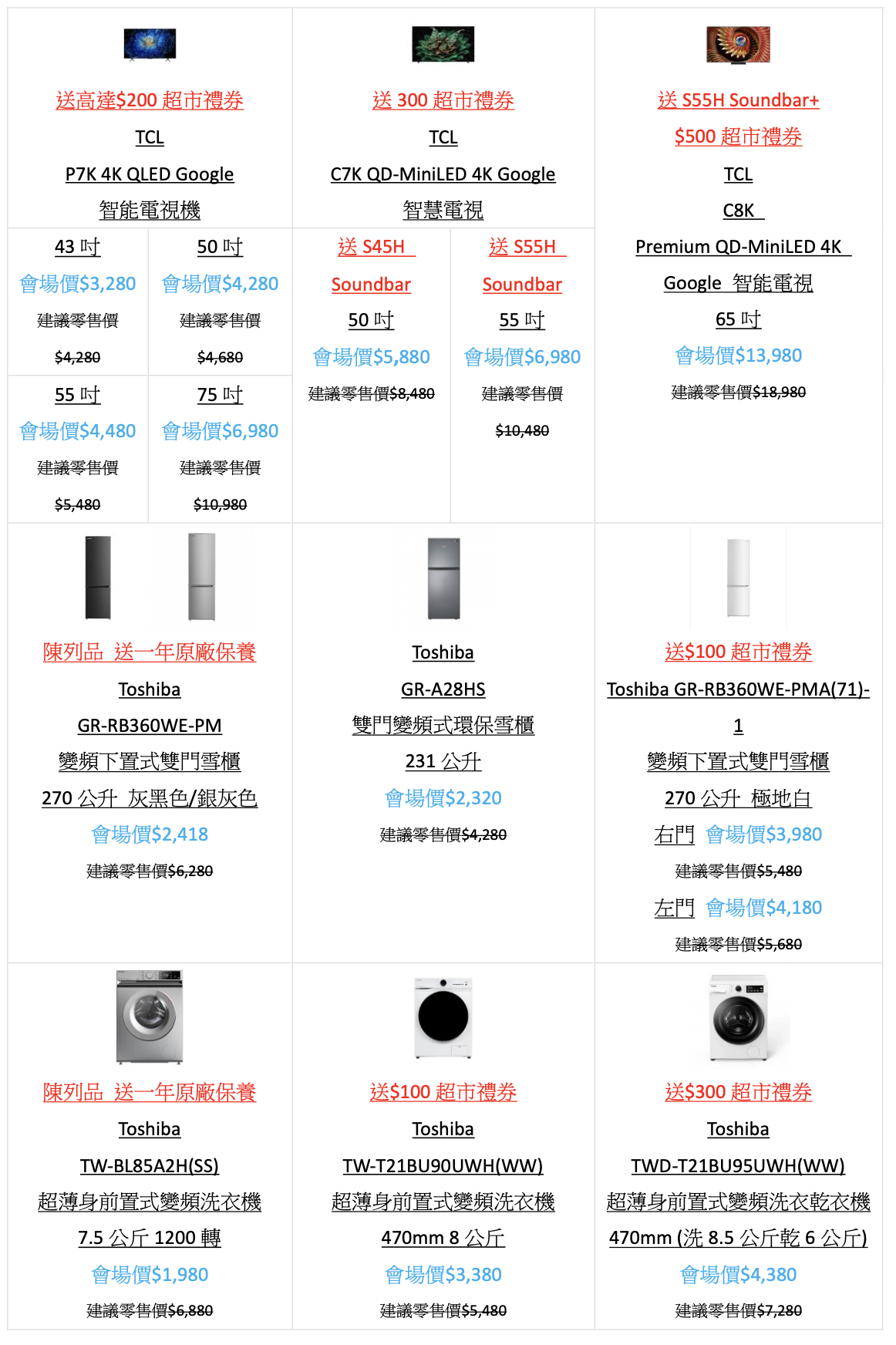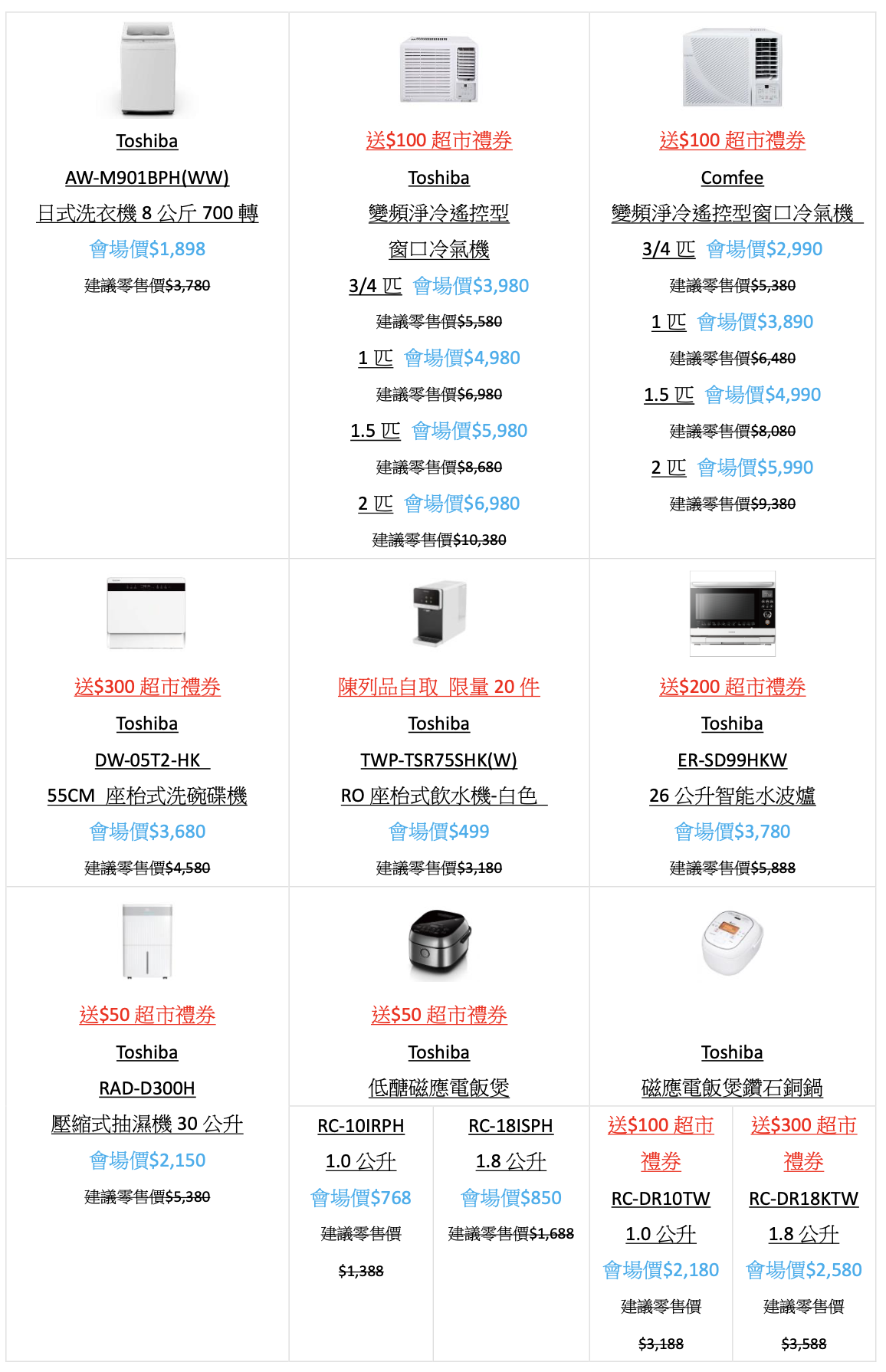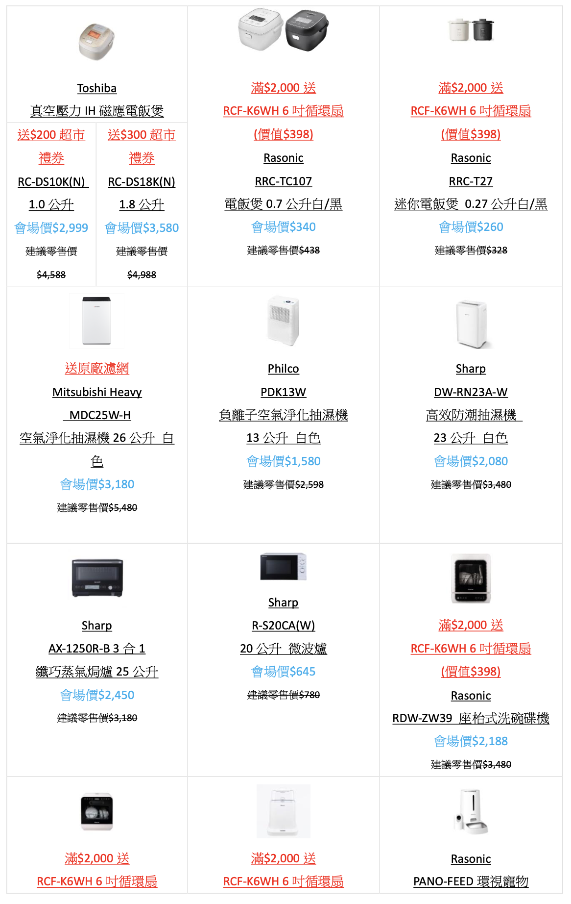 加碼優惠:凡購買指定品牌小型家電產品(Toshiba 及 Rasonic 除外)